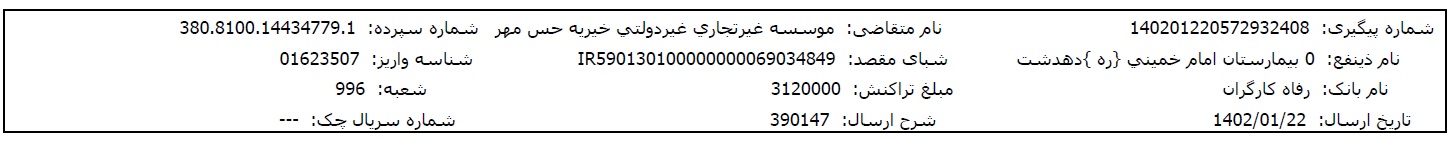 اسناد بیمارستانی و مالی پس از تکمیل مبلغ پرونده، در اختیارتان قرار میگیرد.
