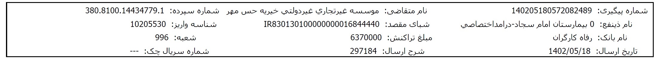 اسناد بیمارستانی و مالی پس از تکمیل مبلغ پرونده، در اختیارتان قرار میگیرد.