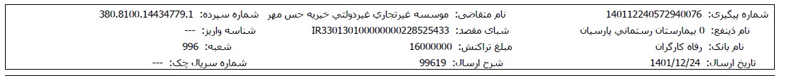 اسناد بیمارستانی و مالی پس از تکمیل مبلغ پرونده، در اختیارتان قرار میگیرد.