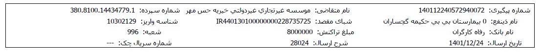 اسناد بیمارستانی و مالی پس از تکمیل مبلغ پرونده، در اختیارتان قرار میگیرد.