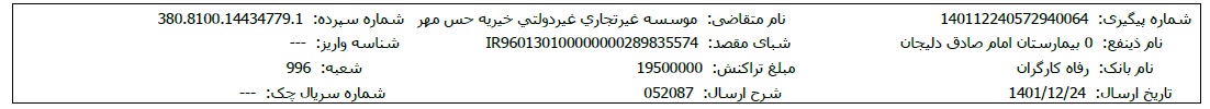 اسناد بیمارستانی و مالی پس از تکمیل مبلغ پرونده، در اختیارتان قرار میگیرد.