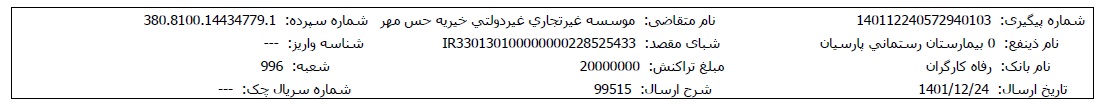 اسناد بیمارستانی و مالی پس از تکمیل مبلغ پرونده، در اختیارتان قرار میگیرد.