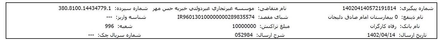 اسناد بیمارستانی و مالی پس از تکمیل مبلغ پرونده، در اختیارتان قرار میگیرد.