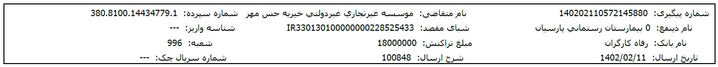 مبلغ موردنیاز برای درمان رقیب عزیز مربوط به موارد زیر میباشد: