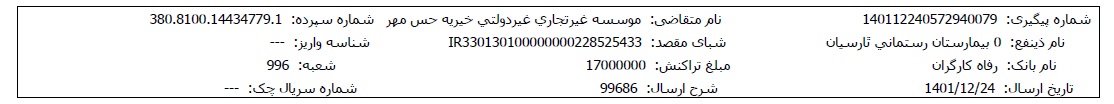 اسناد بیمارستانی و مالی پس از تکمیل مبلغ پرونده، در اختیارتان قرار میگیرد.