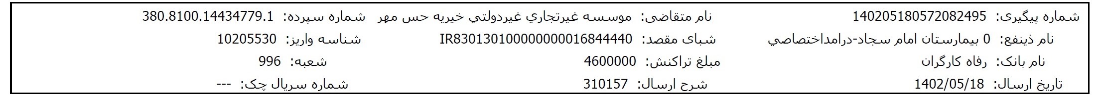 اسناد بیمارستانی و مالی پس از تکمیل مبلغ پرونده، در اختیارتان قرار میگیرد.