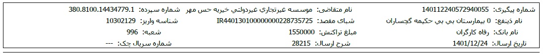 مبلغ موردنیاز برای درمان سیدامیرحسین عزیز مربوط به موارد زیر میباشد:
