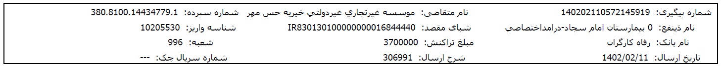 اسناد بیمارستانی و مالی پس از تکمیل مبلغ پرونده، در اختیارتان قرار میگیرد.