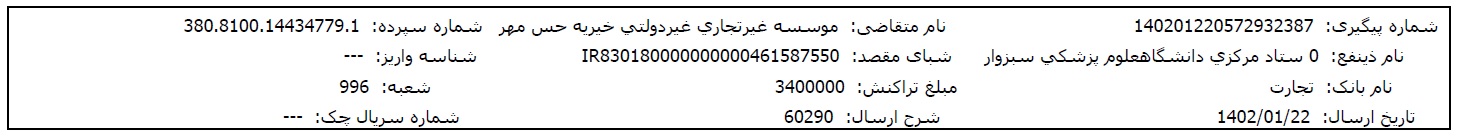 مبلغ موردنیاز برای درمان صدرای عزیز مربوط به موارد زیر میباشد: