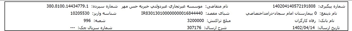 اسناد بیمارستانی و مالی پس از تکمیل مبلغ پرونده، در اختیارتان قرار میگیرد.