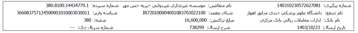 اسناد بیمارستانی و مالی پس از تکمیل مبلغ پرونده، در اختیارتان قرار میگیرد.