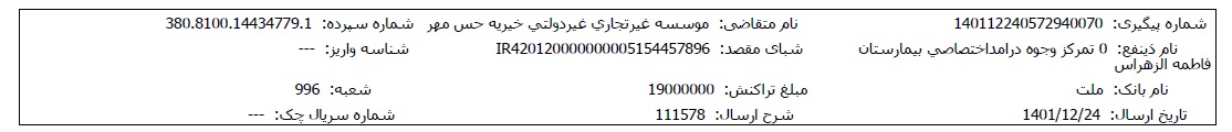 اسناد بیمارستانی و مالی پس از تکمیل مبلغ پرونده، در اختیارتان قرار میگیرد.