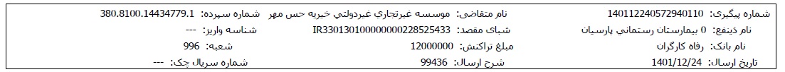 اسناد بیمارستانی و مالی پس از تکمیل مبلغ پرونده، در اختیارتان قرار میگیرد.