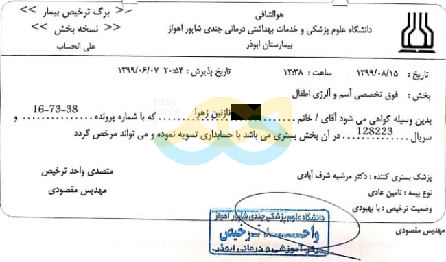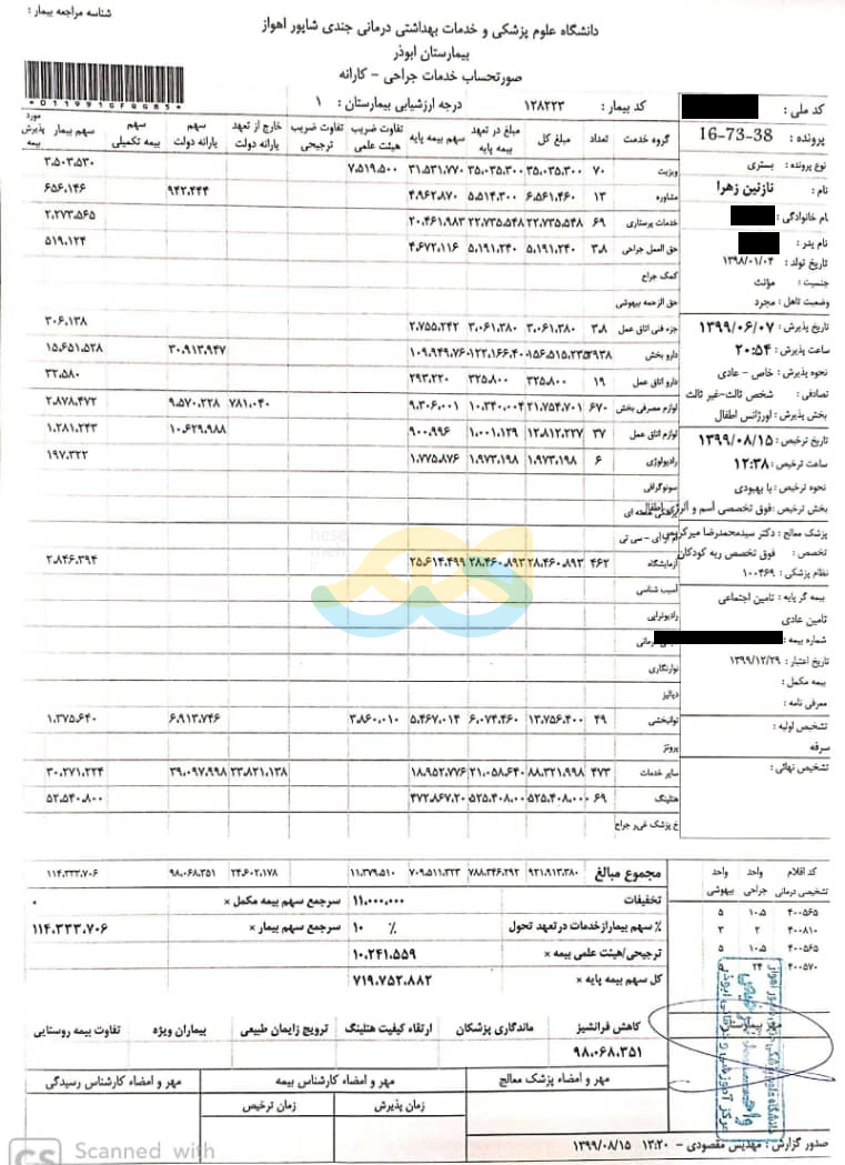 اسناد بیمارستانی و مالی پس از تکمیل مبلغ پرونده، در اختیارتان قرار میگیرد.
