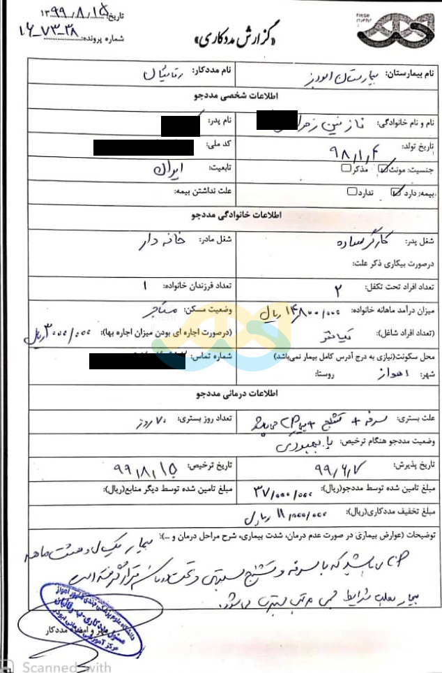 با توجه به طولانی شدن مدت درمان و بالا بودن هزینه درمان، خانواده نازنینزهرا قادر به پرداخت هزینه درمان او نیستند و جهت تامین بخشی از هزینههای درمان وی، نیاز به یاری و حمایت شما هممیهنان عزیز دارند.
