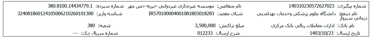 مبلغ موردنیاز برای درمان ندای عزیز مربوط به موارد زیر میباشد: