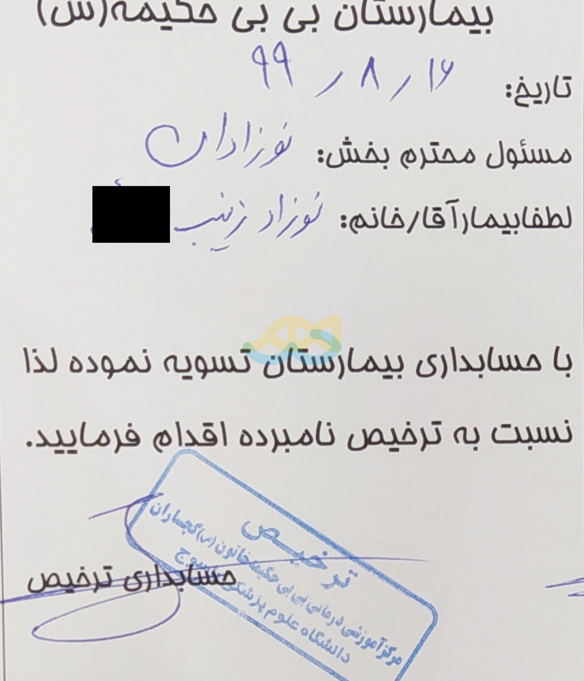به جهت رعایت احترام و حقوق بیمار عکس واقعی او را قرار ندادیم.