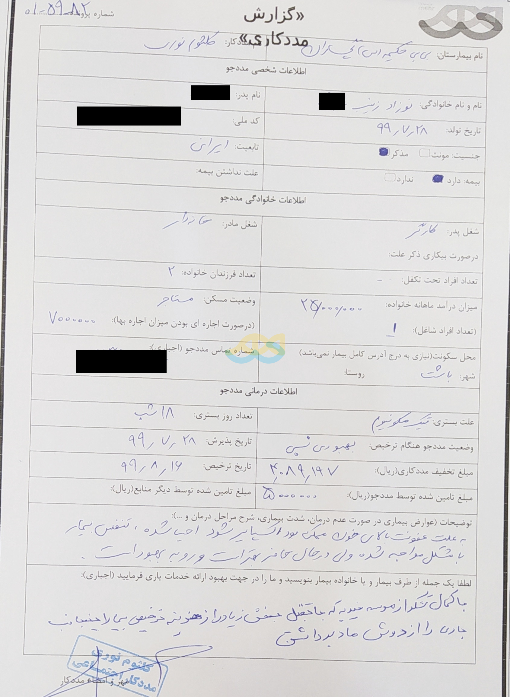 اسناد بیمارستانی و مالی پس از تکمیل مبلغ پرونده، در اختیارتان قرار میگیرد.