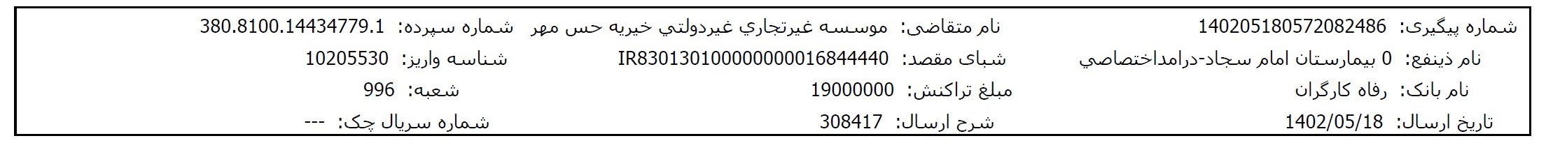اسناد بیمارستانی و مالی پس از تکمیل مبلغ پرونده، در اختیارتان قرار میگیرد.