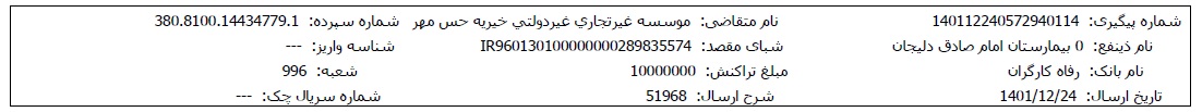 مبلغ موردنیاز برای درمان این نوزاد حس مهری مربوط به موارد زیر میباشد: