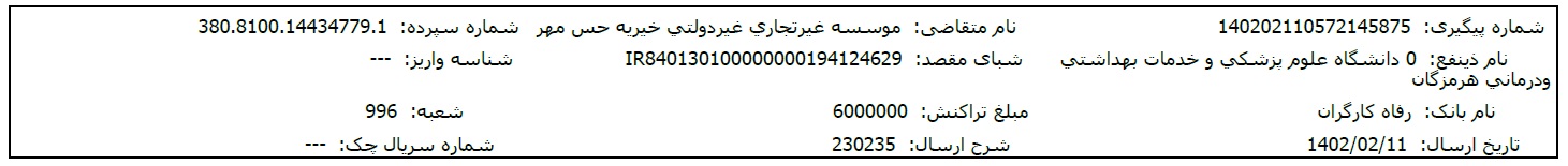 مبلغ موردنیاز برای درمان این نوزاد حس مهری مربوط به موارد زیر میباشد: