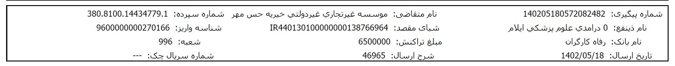 مبلغ موردنیاز برای درمان این نوزاد حس مهری مربوط به موارد زیر میباشد: