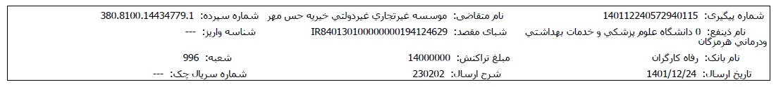مبلغ موردنیاز برای درمان این نوزاد حس مهری مربوط به موارد زیر میباشد: