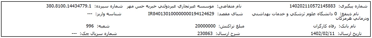 مبلغ موردنیاز برای درمان این نوزاد حس مهری مربوط به موارد زیر میباشد: