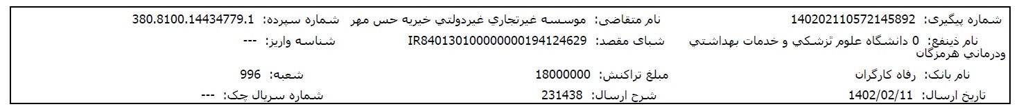 مبلغ موردنیاز برای درمان این نوزاد حس مهری مربوط به موارد زیر میباشد: