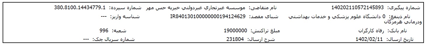 مبلغ موردنیاز برای درمان این نوزاد حس مهری مربوط به موارد زیر میباشد: