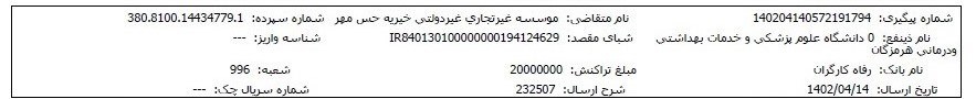 مبلغ موردنیاز برای درمان این نوزاد حس مهری مربوط به موارد زیر میباشد: