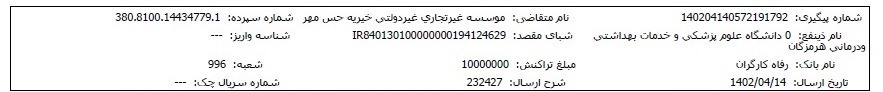 مبلغ موردنیاز برای درمان این نوزاد حس مهری مربوط به موارد زیر میباشد:
