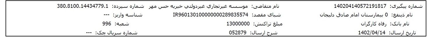 اسناد بیمارستانی و مالی پس از تکمیل مبلغ پرونده، در اختیارتان قرار میگیرد.