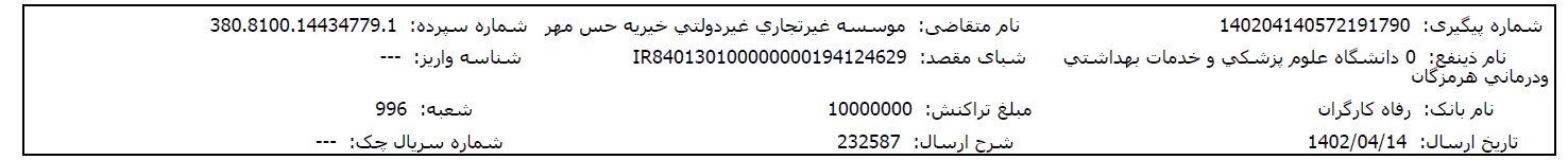 مبلغ موردنیاز برای درمان این نوزاد حس مهری مربوط به موارد زیر میباشد:
