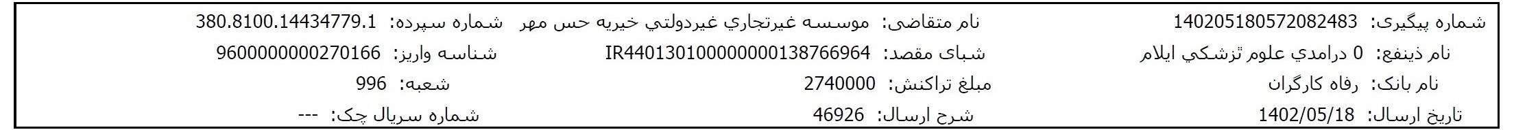 مبلغ موردنیاز برای درمان این نوزاد حس مهری مربوط به موارد زیر میباشد: