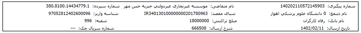مبلغ موردنیاز برای درمان این نوزاد حس مهری مربوط به موارد زیر میباشد: