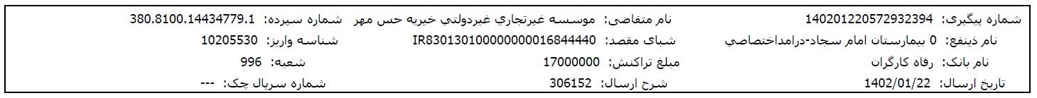 اسناد بیمارستانی و مالی پس از تکمیل مبلغ پرونده، در اختیارتان قرار میگیرد.