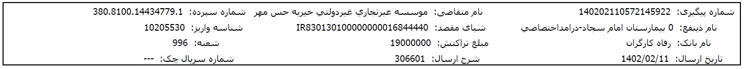 اسناد بیمارستانی و مالی پس از تکمیل مبلغ پرونده، در اختیارتان قرار میگیرد.