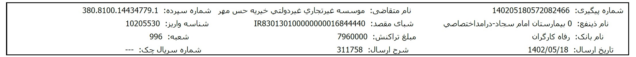 مبلغ موردنیاز برای درمان این نوزاد حس مهری مربوط به موارد زیر میباشد: