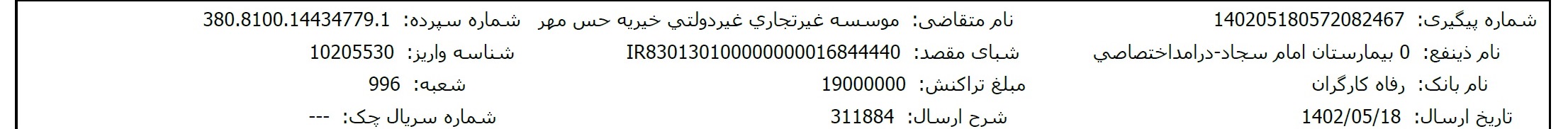 اسناد بیمارستانی و مالی پس از تکمیل مبلغ پرونده، در اختیارتان قرار میگیرد.