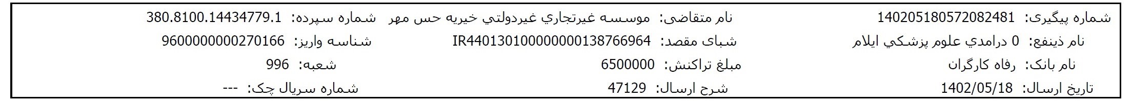 مبلغ موردنیاز برای درمان این نوزاد حس مهری مربوط به موارد زیر میباشد: