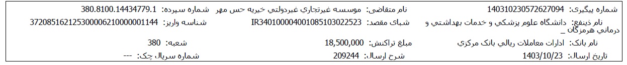 مبلغ موردنیاز برای درمان این نوزاد حس مهری مربوط به موارد زیر میباشد:
