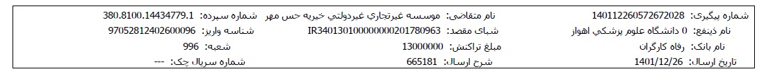 مبلغ موردنیاز برای درمان این نوزاد حس مهری مربوط به موارد زیر میباشد: