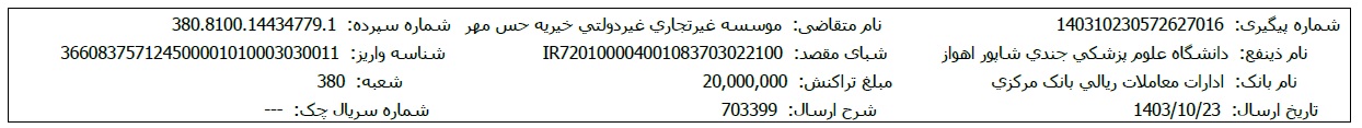 مبلغ موردنیاز برای درمان این نوزاد حس مهری مربوط به موارد زیر میباشد: