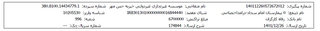 اسناد بیمارستانی و مالی پس از تکمیل مبلغ پرونده، در اختیارتان قرار میگیرد.