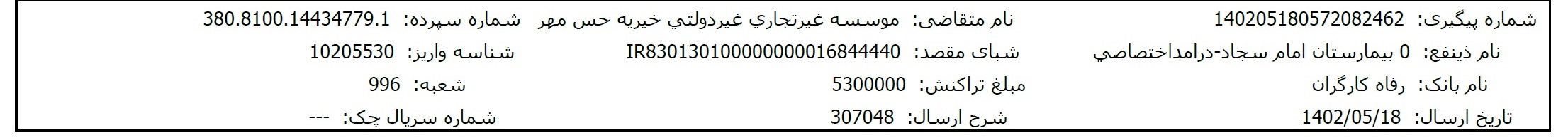 اسناد بیمارستانی و مالی پس از تکمیل مبلغ پرونده، در اختیارتان قرار میگیرد.