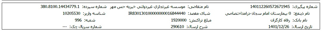 اسناد بیمارستانی و مالی پس از تکمیل مبلغ پرونده، در اختیارتان قرار میگیرد.