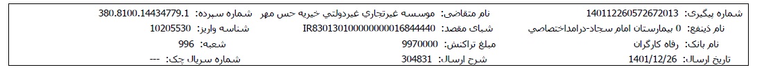 اسناد بیمارستانی و مالی پس از تکمیل مبلغ پرونده، در اختیارتان قرار میگیرد.