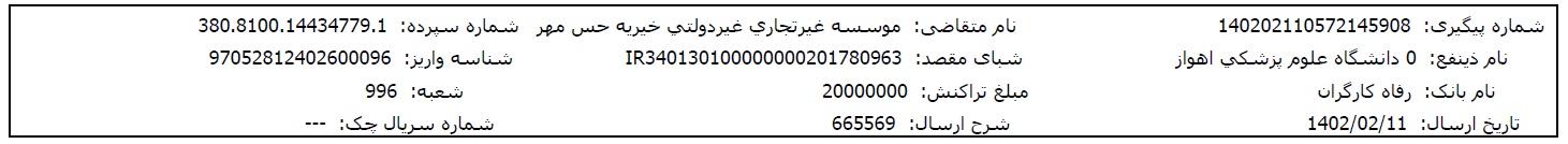 مبلغ موردنیاز برای درمان این نوزاد حس مهری مربوط به موارد زیر میباشد: