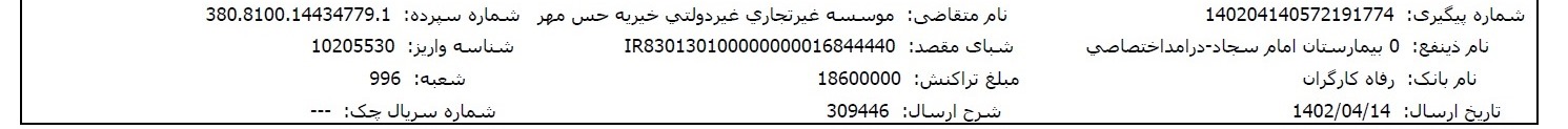 اسناد بیمارستانی و مالی پس از تکمیل مبلغ پرونده، در اختیارتان قرار میگیرد.